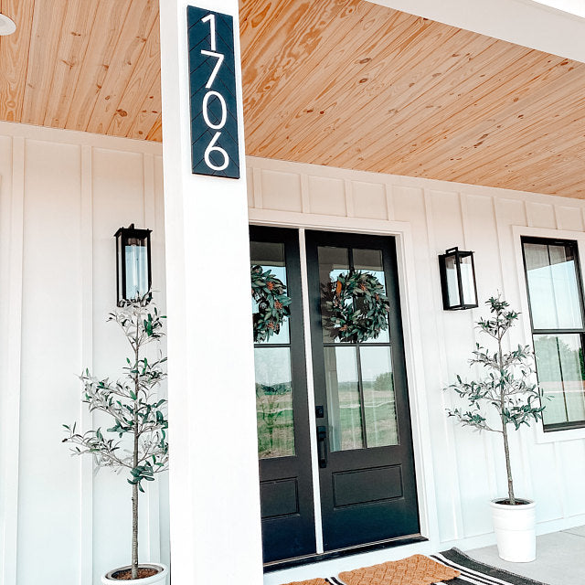 Our high contrast elegant design with the herringbone backing looks amazing with modern or traditional styles, white siding or red brick.